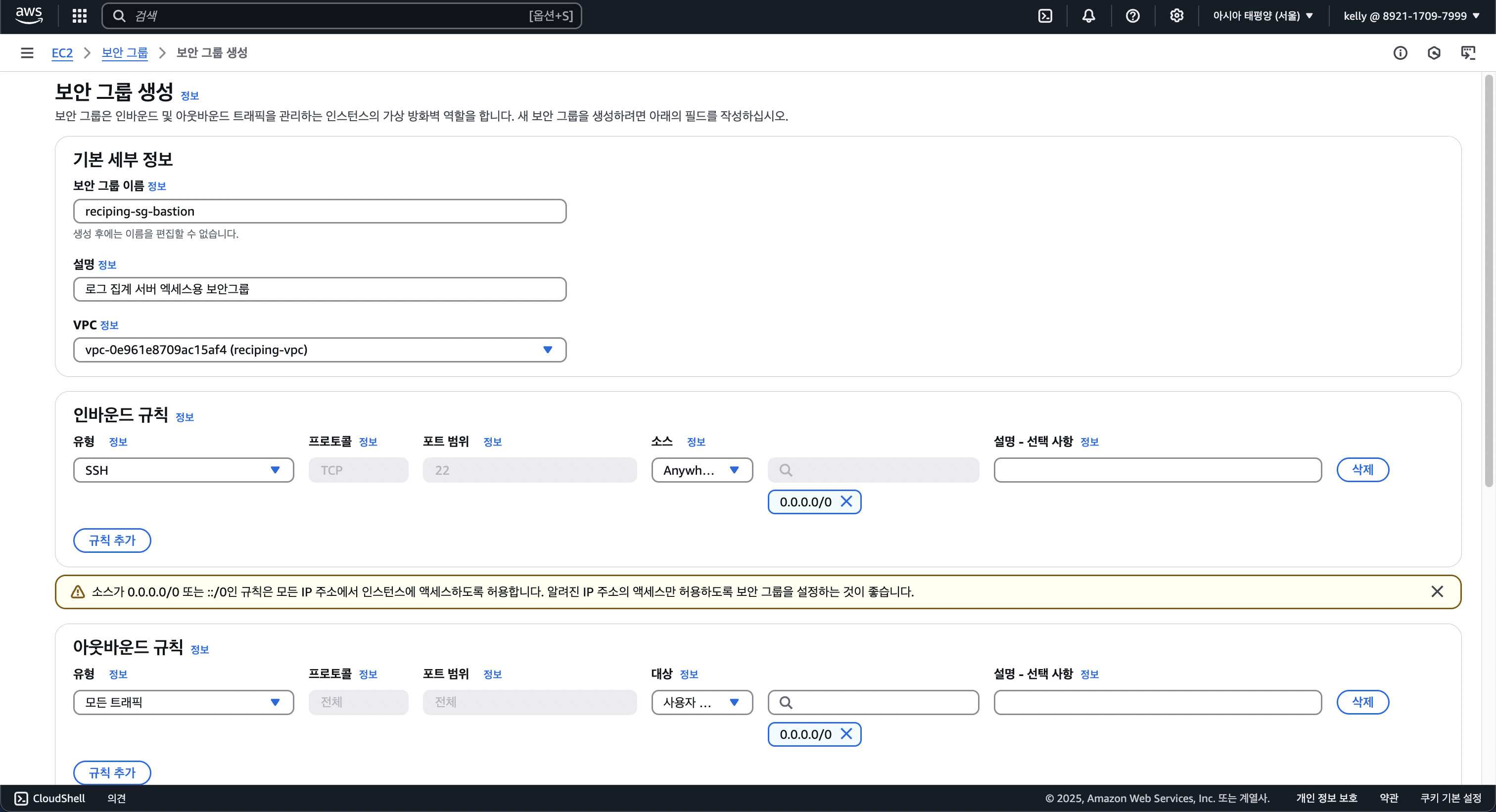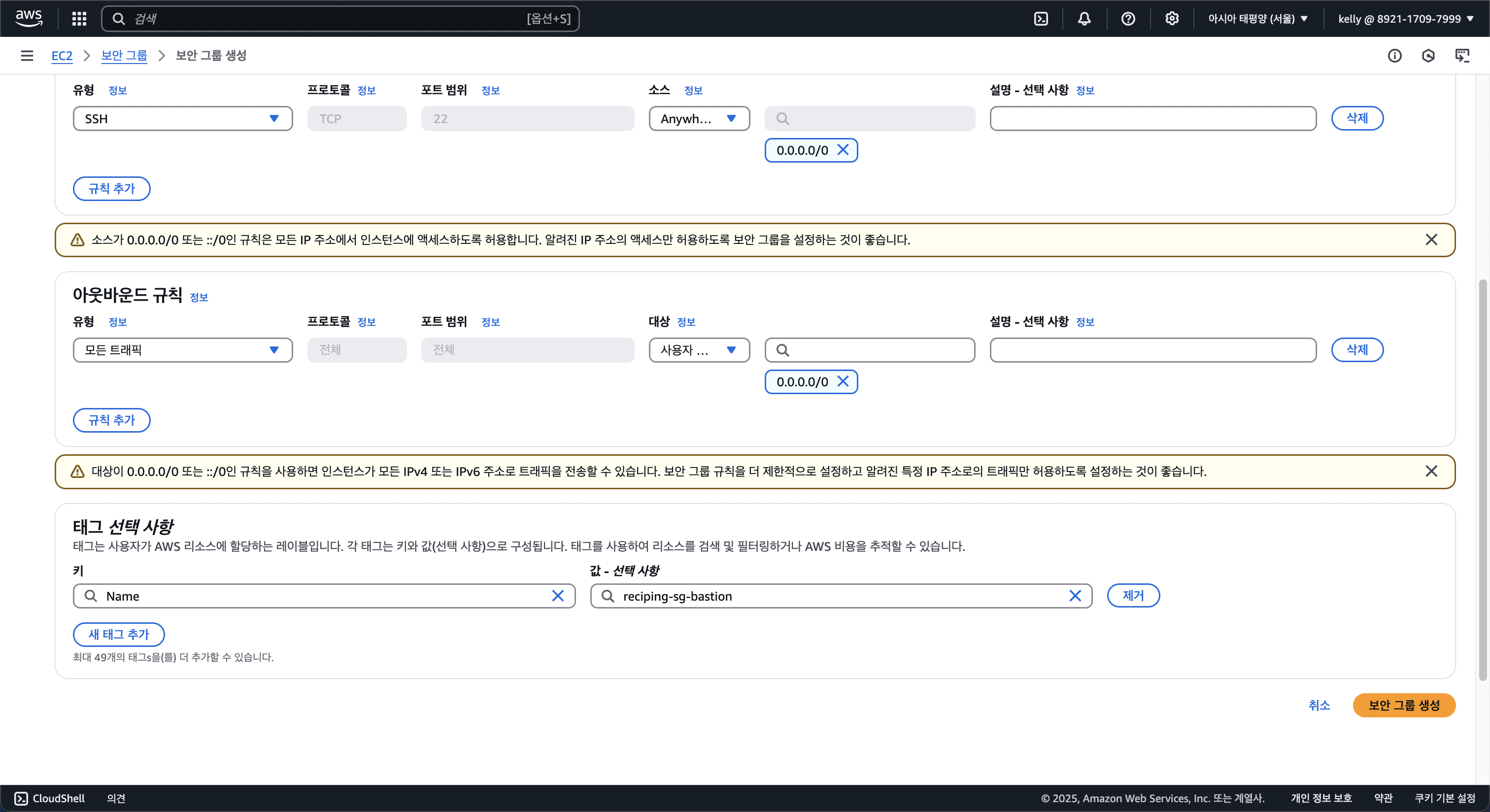 2. 베스천 서버를 보호해줄 보안 그룹 생성하기