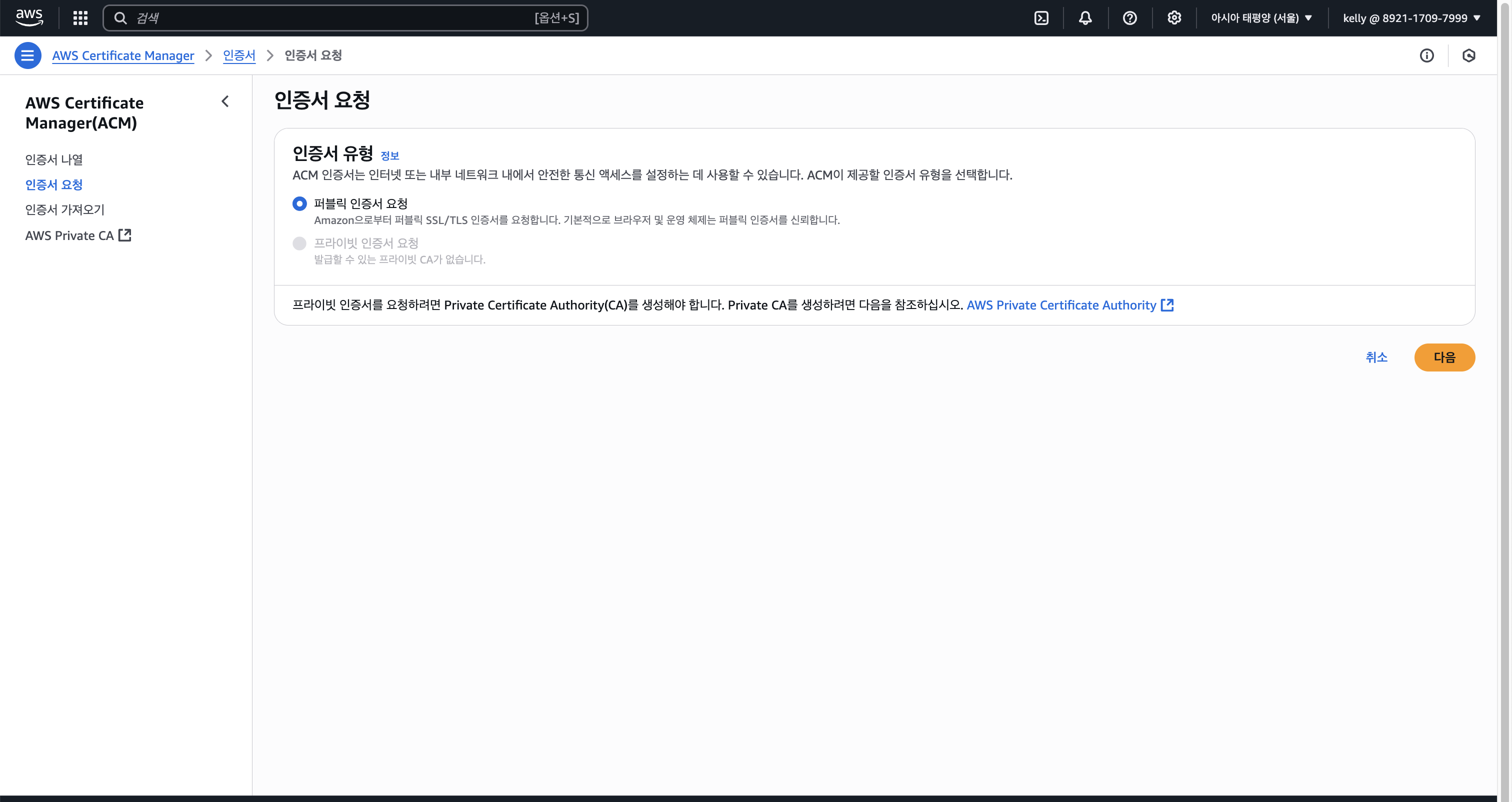 3. HTTPS 연결을 위한 ACM 인증서 발급하기