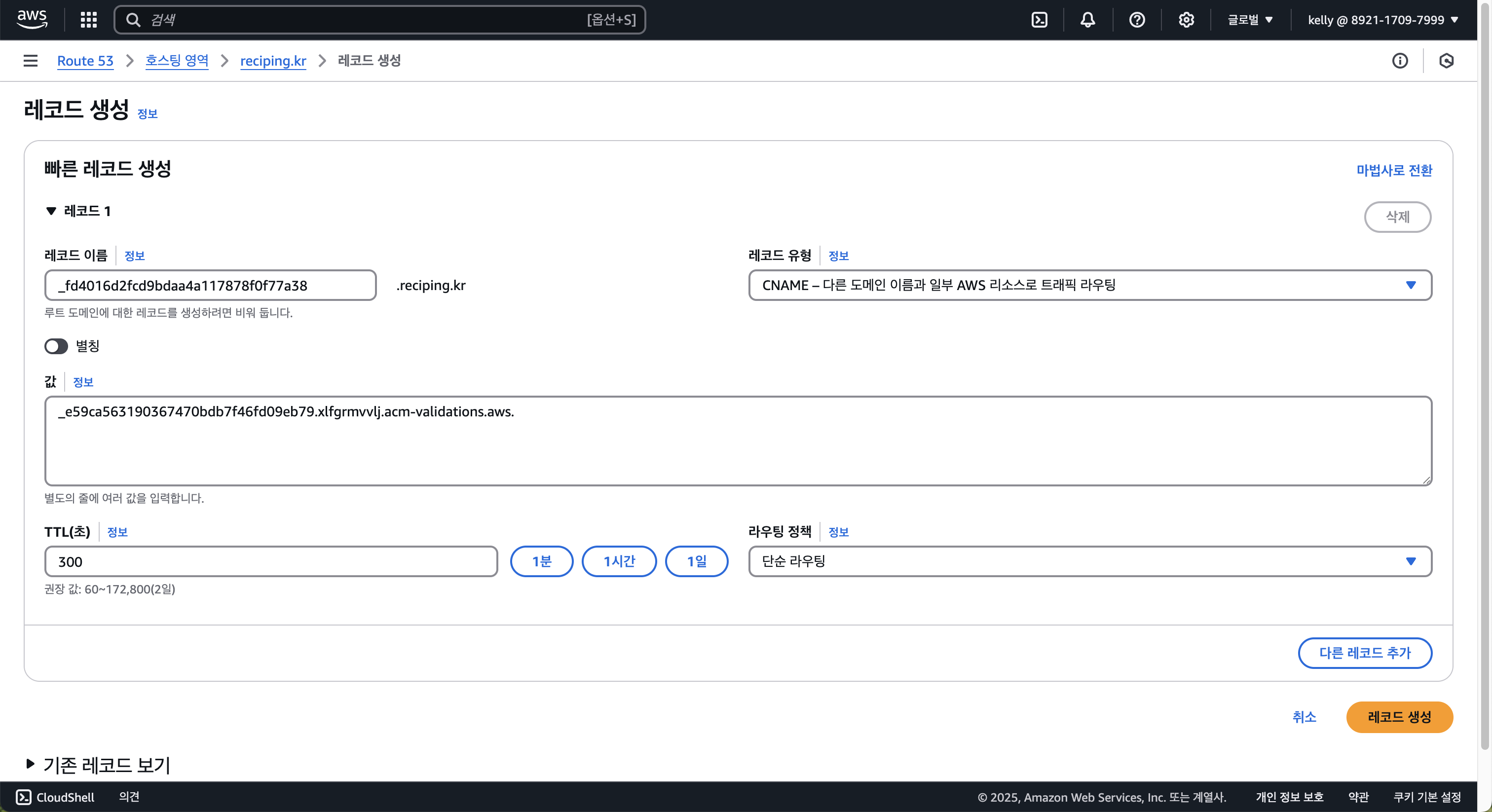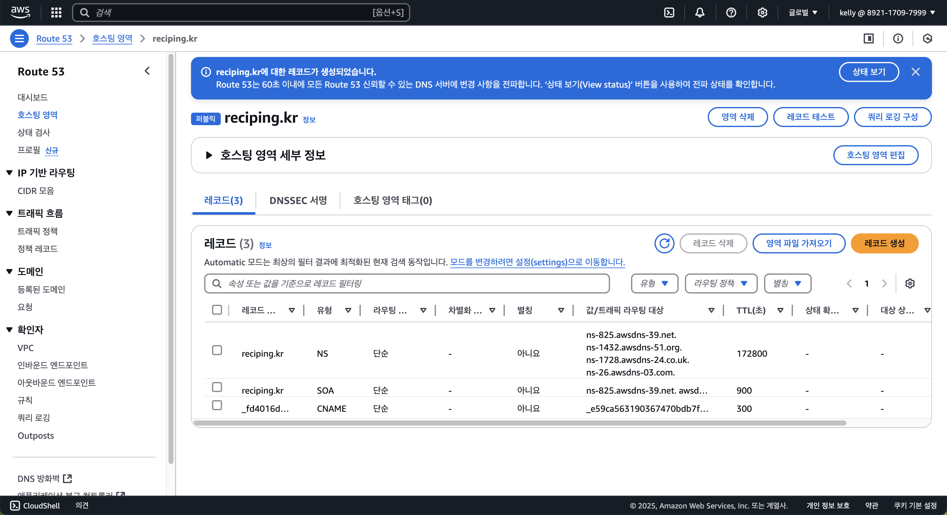 | [reciping] 프론트단의 Route53 + S3 + CloudFront 설정하기 (0) | 2025.11.05 |