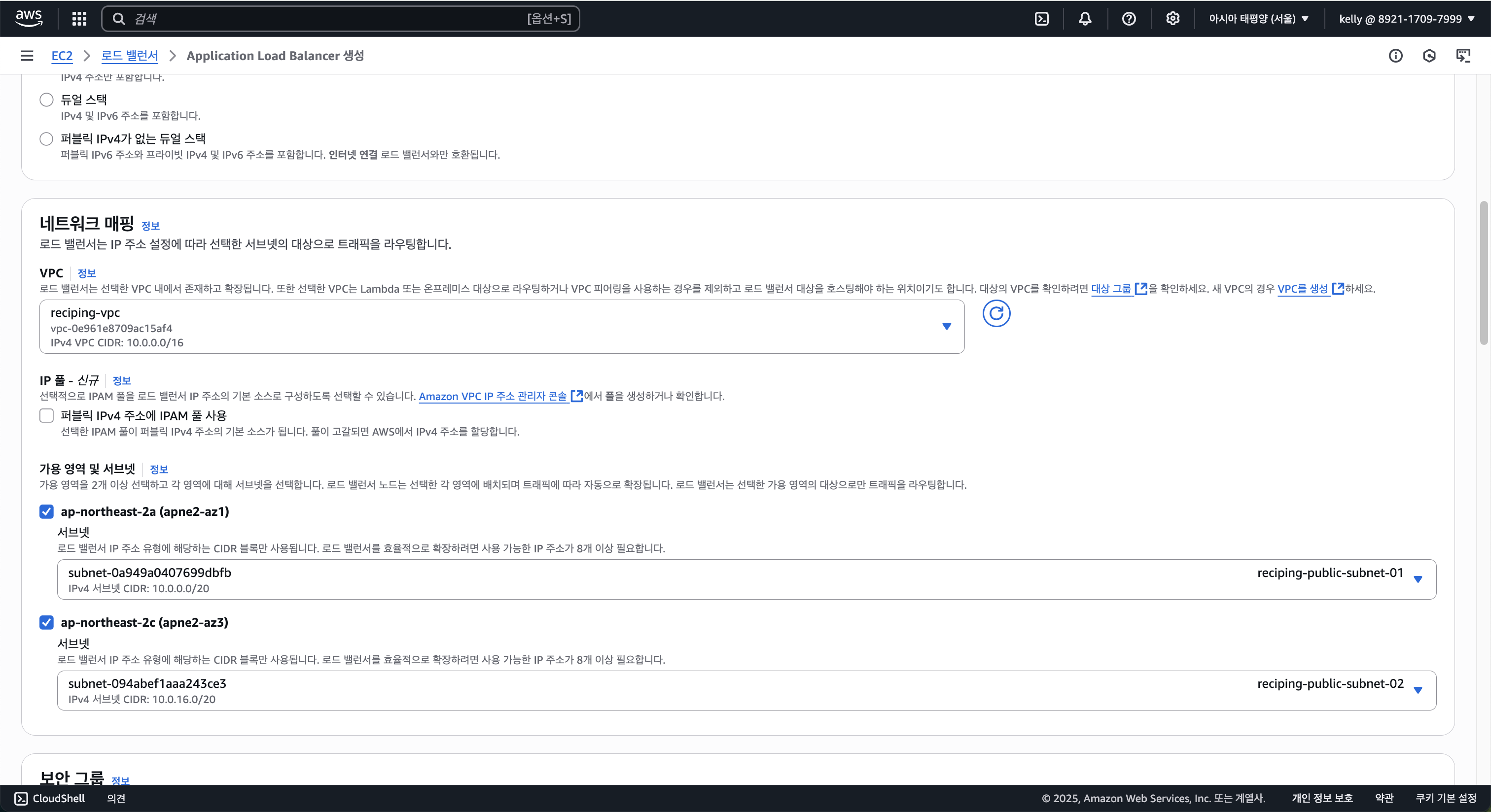 : EC2 인스턴스에 접속해서 디버깅하고 싶다면 꼭 필요 ⇒ reciping-prod-ec2-key 선택