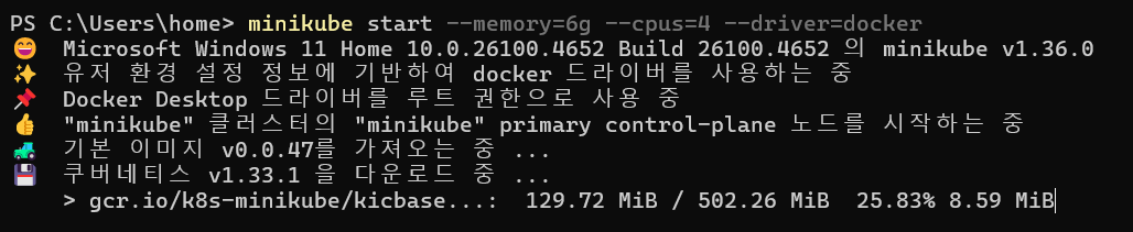 사전에 minikube 명령어 실행할 수 있도록 설치 필요