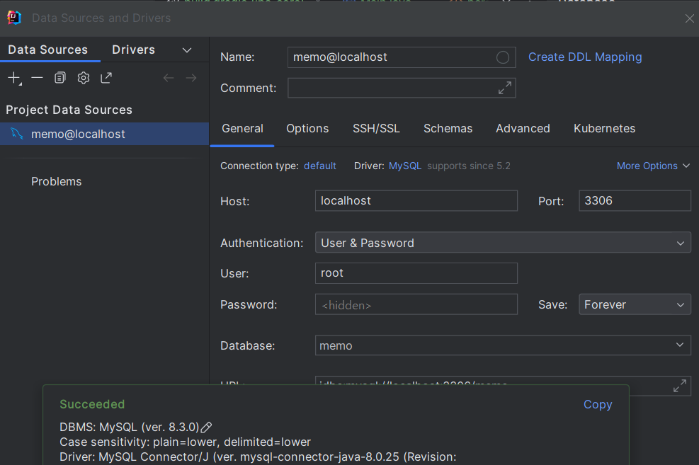 test connection 누르니 succeeded 해결 완료👍👍