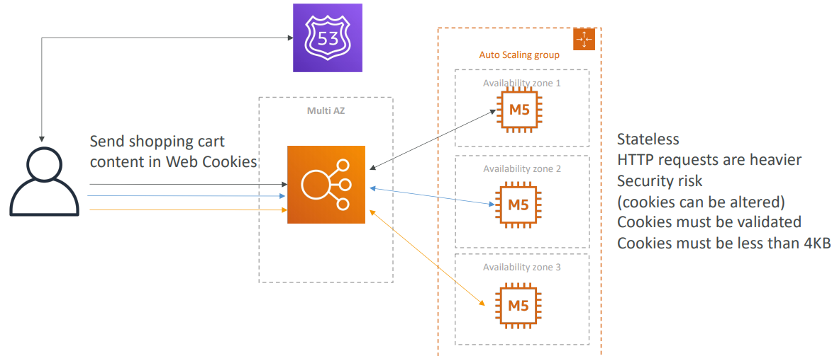 그래서 이런 종류의 아키텍처에서는 EC2 인스턴스가 반드시 사용자 쿠키의 내용을 검증해야한다!